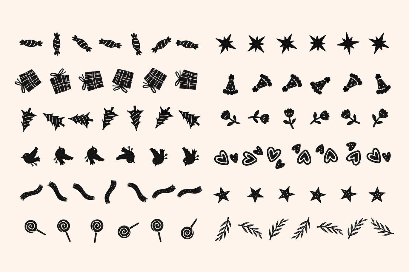 圣诞节装饰元素Procreate笔刷包下载。在这个笔刷包中,你会发现有很多非常好看的笔刷,可以应用于你的插画作品中!使用画笔非常简单,只需放置画笔笔触并从画笔面板中选择合适的画笔。
