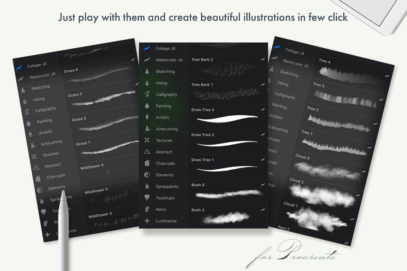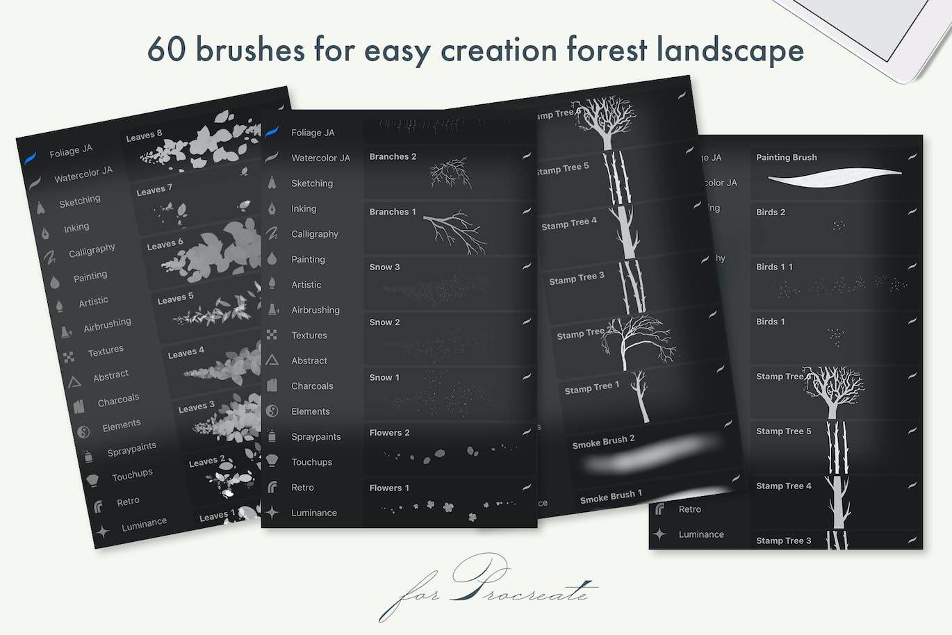Procreate树叶叶子60组笔刷包下载
