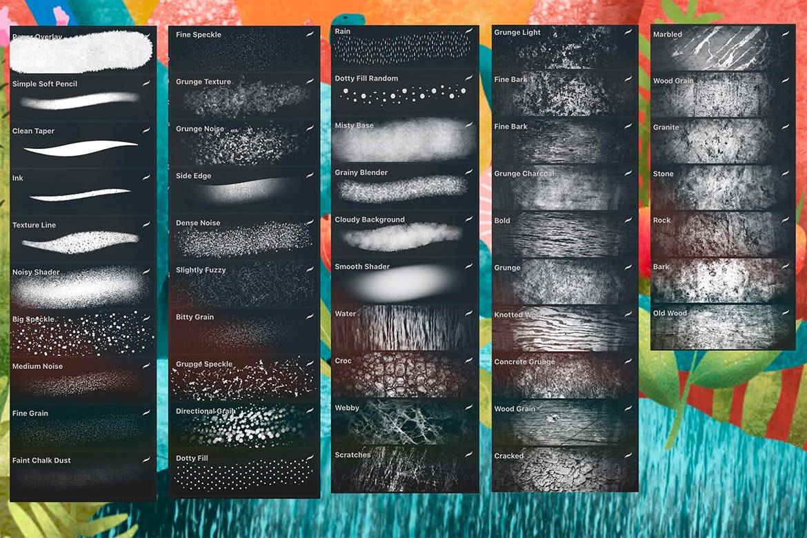 G2AZDAY纹理Procreate笔刷包下载。47个独特的Procreate纹理、砂砾、粗糙和颗粒特效笔刷,使用这些笔刷可以在你的插画中添加各种需要的纹理。从细小的粉笔灰效果,到木头,石头,水或大理石,都可以用纹理去画出来。