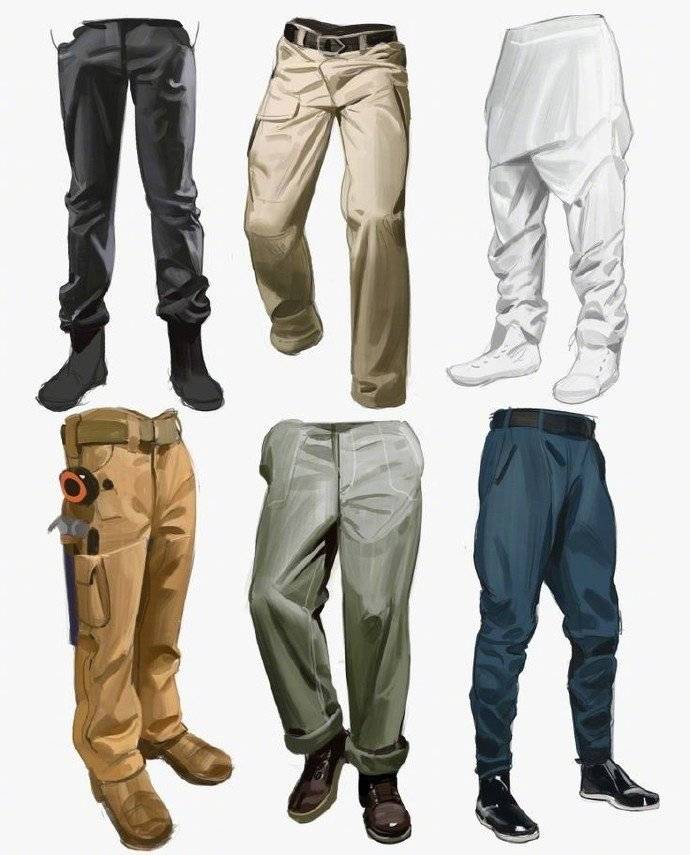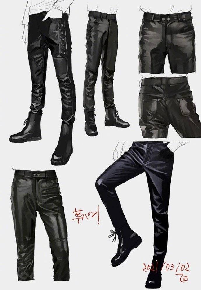 一组裤子绘画参考素材下载。