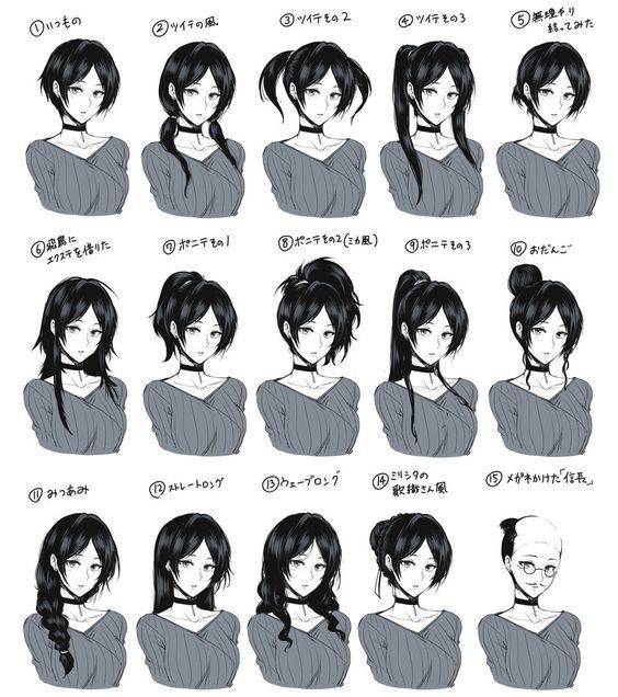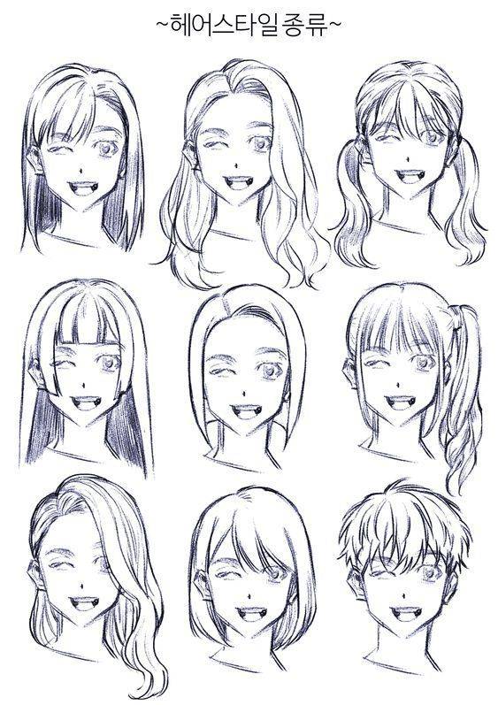 多种发型绘画参考素材下载。