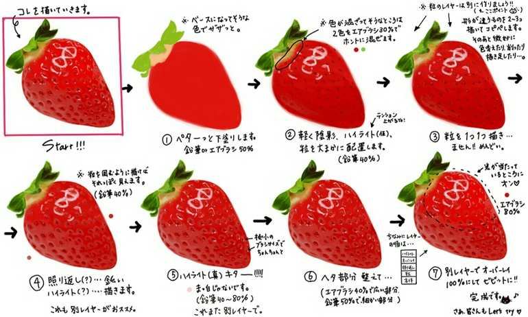 非常简单的草莓画法教程!想必这个问题都是绘画萌新们比较伤脑筋的问题,那么到底怎样才能画好草莓呢?一起来学习一下吧!