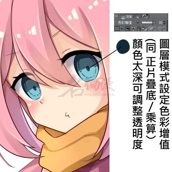 顺带一提:如果觉得自己不好控制眼睛阴影的颜色,还可以新建正片叠底图层。