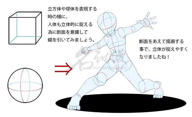 标注这些横截面其实对于很多同学来说应该并不陌生,我们过去画立方体与球体也会有类似方法。现在我们把人体则是当作了一个长圆柱体(头部则是球体)。
