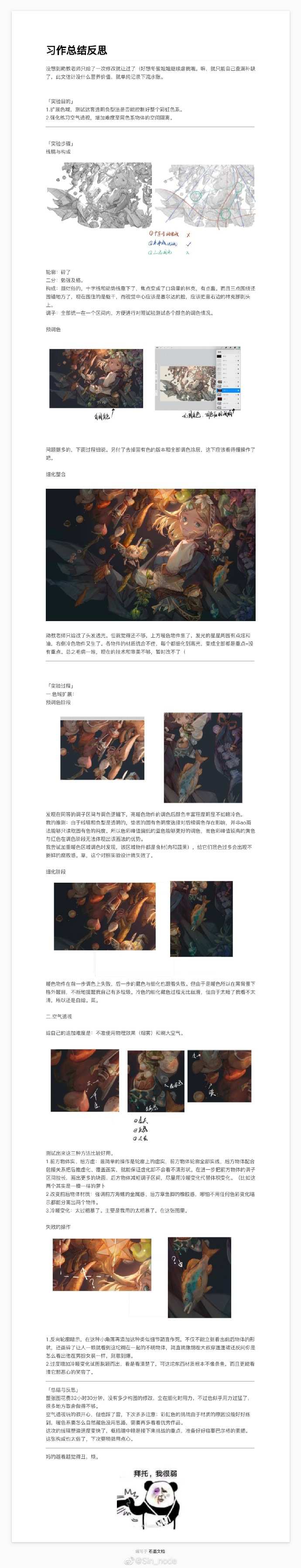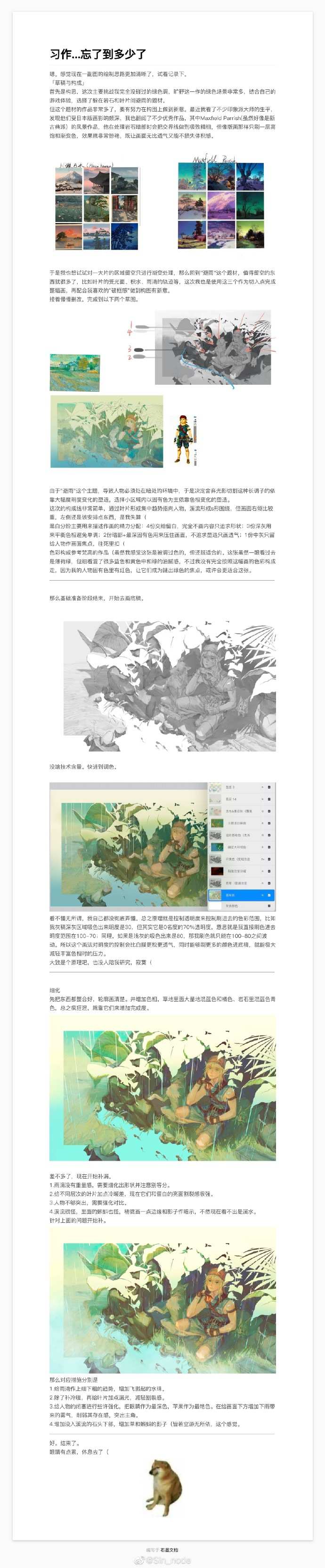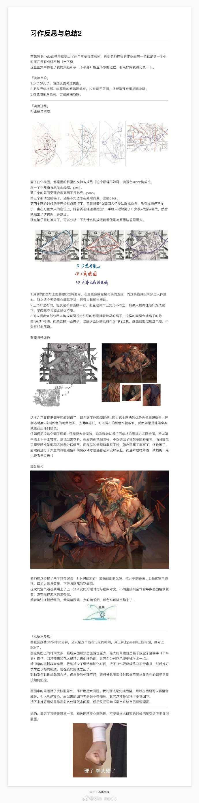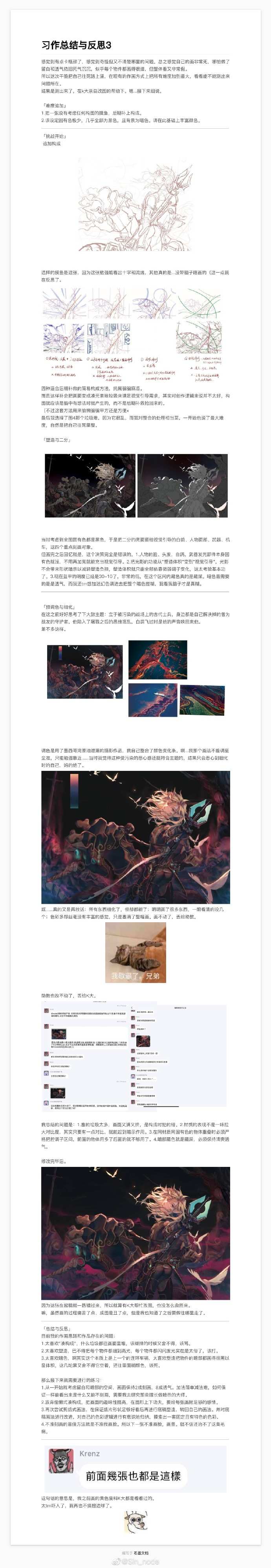关于画画自卑焦虑的问题,这是我的处理方法,仅供参考。之前有很长一段时间,一发完图就疯狂地刷新社交平台看反馈,然后陷入我的画都是垃圾没人喜欢这样的情绪中。看见林冉老师的微博,提倡画完后写思考,于是便在发完图后立刻扔下手机,开始打字,回味作画时的过程,再自己给自己提下一张的要求。写完之后再去看反馈,会更加心平气和,毕竟解决方法靠自己找到了,就不会迷茫。