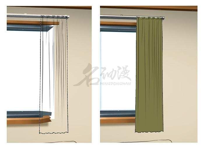 和窗框一样,窗帘也是会产生影子的和窗框不一样的是,窗帘和墙壁之间是有空间的,所以窗帘的阴影边缘要更加模糊一些。
