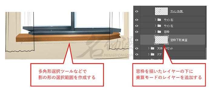 注意我们再给窗框和窗扇上色的时候,需要考虑吊灯的光带给窗框结构的阴影。