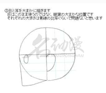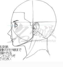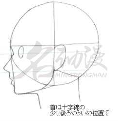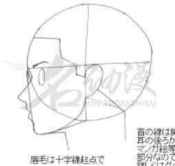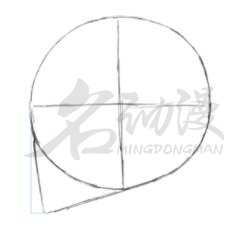 画出圆形加一个十字来辅助,这步跟画正面是一样的。接下来定出下巴点位置,按照常规距离是在十字中心到圆的一半位置。