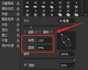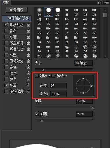 当然大家也可以直接在圆旁边的栏中,输入角度和圆度的具体数值,来改变笔头的效果: