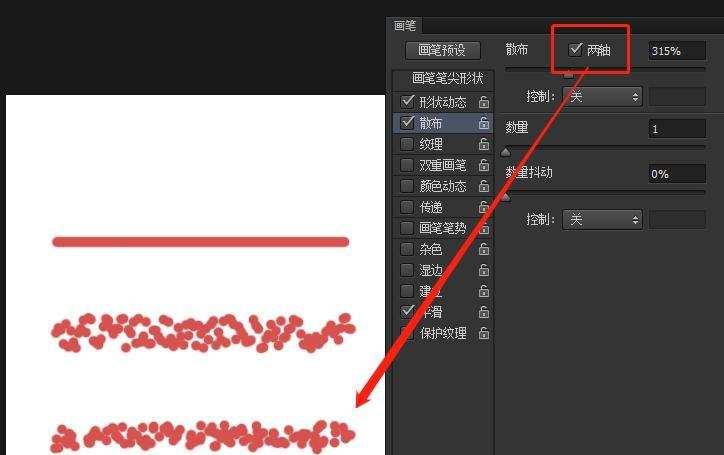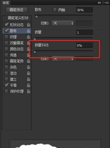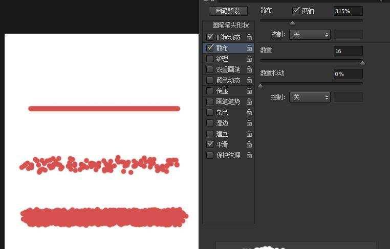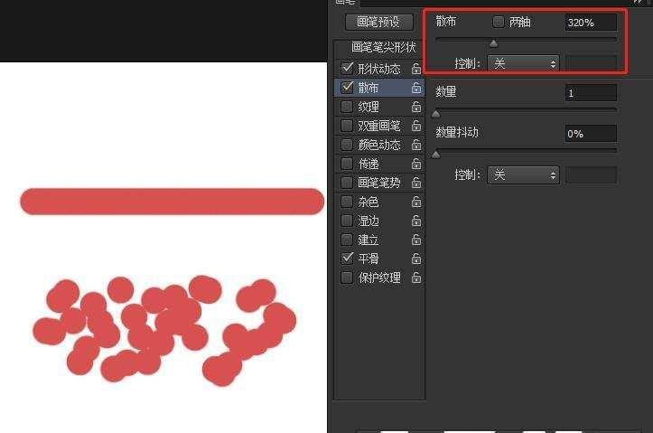 笔刷散布的范围大小,数值越大越发散。