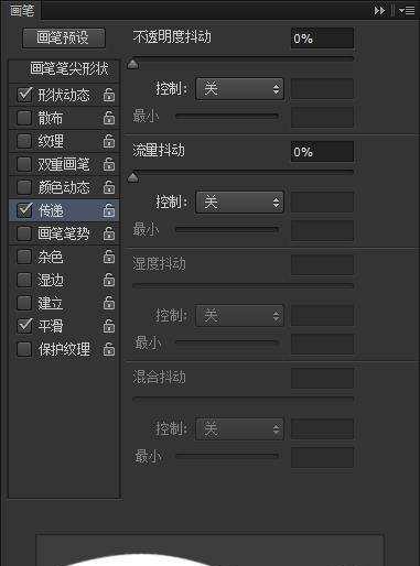 这个对于很多同学来说是非常熟悉的了,其实就是传递调节出墨量的深浅,也是我们控制笔刷色彩深浅的设置: