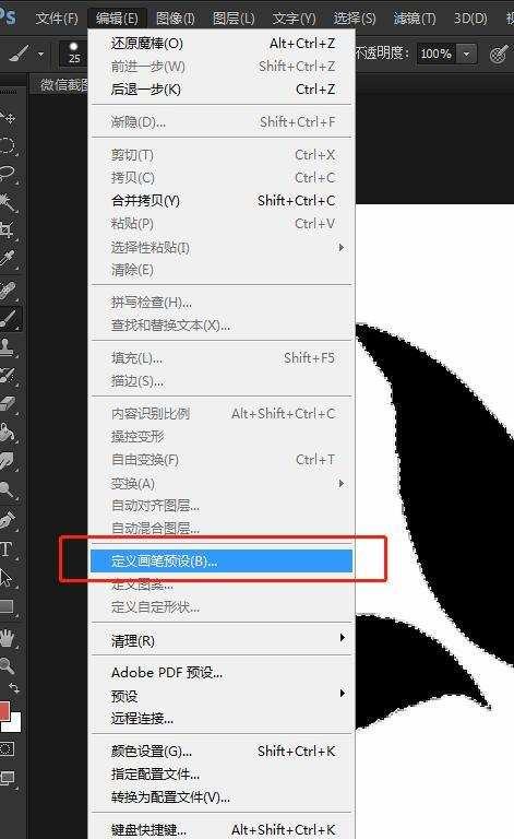 在PS顶部工具栏点击“编辑——定义笔刷预设”。