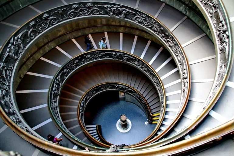 在我们实际生活中也有一些充满美感的建筑会使用这样的布局,比如梵蒂冈博物馆的螺旋楼梯。