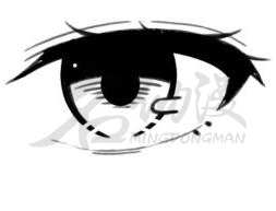 首先是上睫毛,因为眼睛是个球体,有体积感,那么要以两边深中间浅来画出眼睛的立体感,中间浅的地方就是眼球凸起来的部分。在这里要注意眼睫毛长向及分布的排序,在漫画人物里,他们的眼睫毛是按照单根和双根来排序的。同样的画法,将下睫毛也画出来,下睫毛就没有向上睫毛一样的浓密,就轻微的几个,也是单根和双根的。