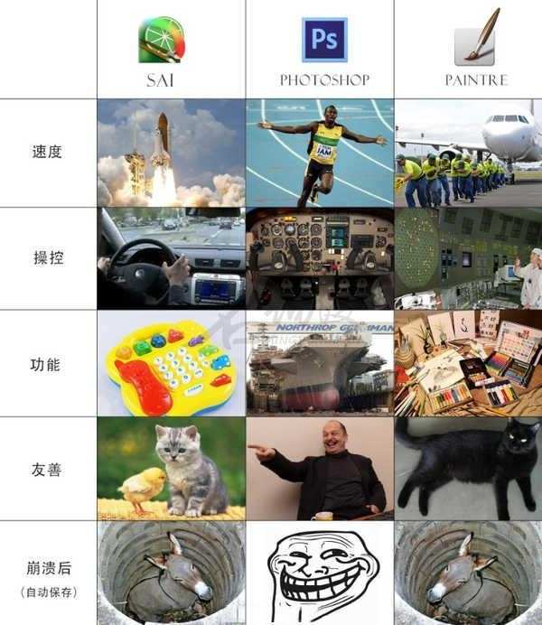 最后关于这几款软件的性能对比,有一张非常流行的图即可以清晰概括。大家可以根据自己的需要进行选择。