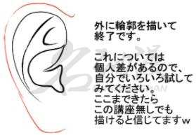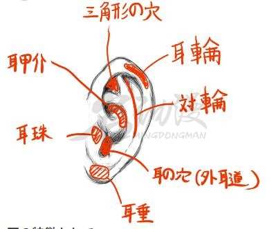 在插画和漫画里是不需要把耳朵结构都画出来的。只要保留:耳轮、对耳轮、耳屏、耳屏间切迹、耳垂和三角窝即可。