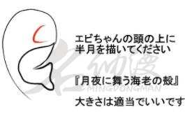 第三步,在虾头上方画出一个C出来,这个是三角窝的位置。如图下:
