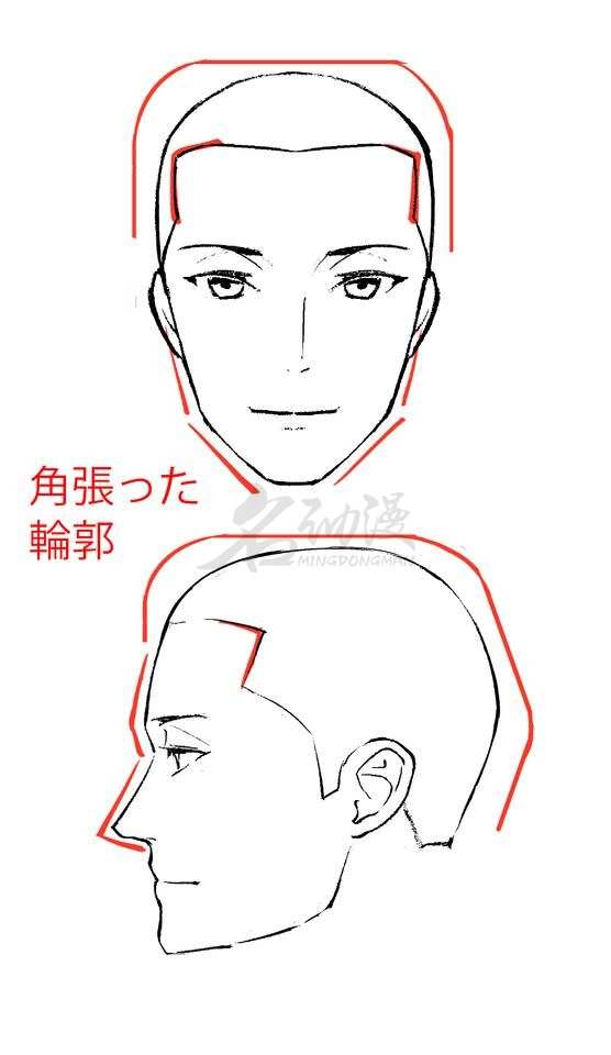 (1)而与女性相对的,成年男人的头部,往往会有更多的棱角,轮廓线不会有太多的曲线,更多的会是很急的转折,尤其是下巴和鼻梁更需要锐利的转折。