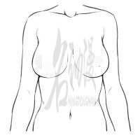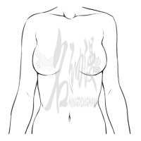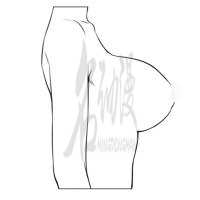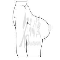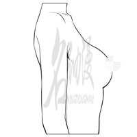 胸部位于锁骨重心向下一个拳头的距离与腰部位置往上一个拳头距离的中间为基础定位。这里要注意了,起点是在腋下,弧度决定于胸部的大小。