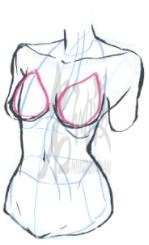 画好女性胸部的第一点是把它画成水滴状,而不是圆形。让我们把它画成柔软的流动,可以拿起一个水气球并把它举起来,可以看出是柔软的,而不是足球那么圆那么硬实感。
