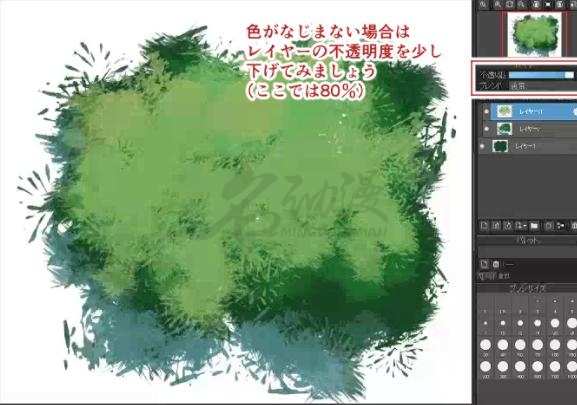 最后一步:最后再建立一个新图层,并且将图层混合更改设置为正片叠底。用饱和度较低的蓝色给草地添加一些阴影,并也需要新建一个图层。到这里就完成了啦!如图所示: