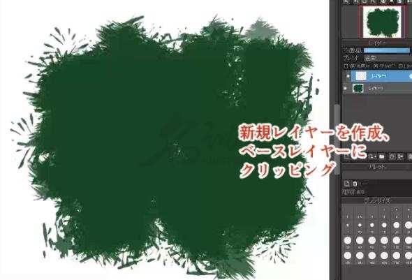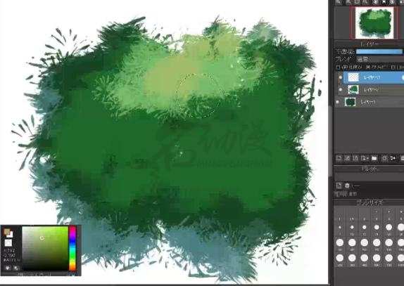 第五步:再新建一个图层,使用与上个图层相似的黄色调的浅绿色,随意的填涂再新建图层上。如图所示: