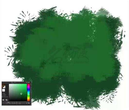 第一步:首先新建一个图层,用云笔工具,选择翠绿,铺在图层上。如图所示: