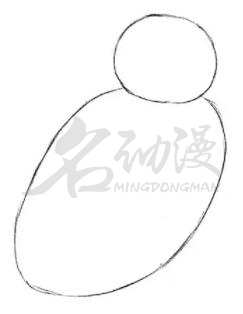 第一步:首先画一个圆表示头部,再画一个不正的圆柱体表示身体,确定好形状大小,以及动作的动态在这一步所画的线条都要是使用力度非常轻的线条,可以用铅笔来刻画这一步。如图所示: