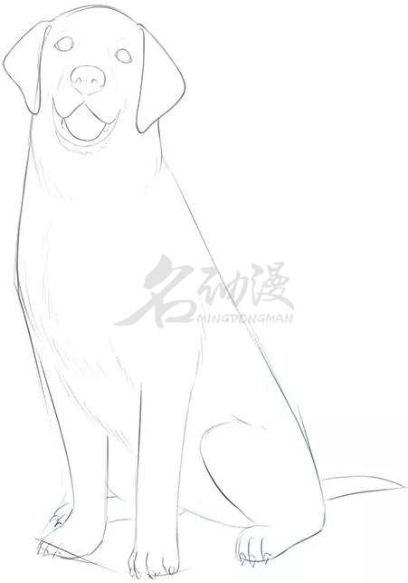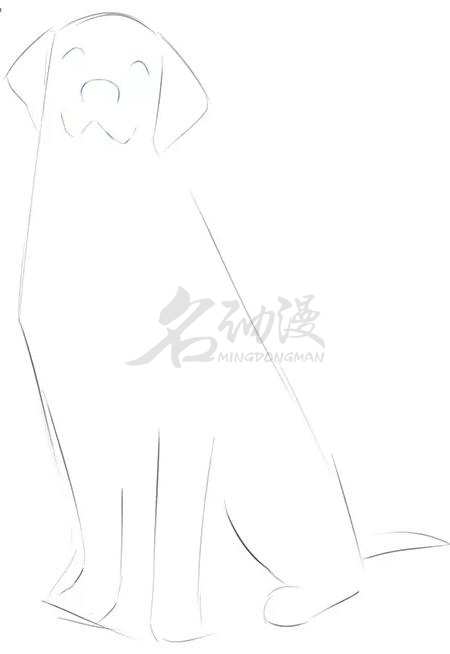 第一步:首先要画出狗大概的轮廓,确定好狗的形状大小,以及狗的动态,例如上图中狗坐着的。在这一步所画的线条都要是使用力度非常轻的线条,可以用铅笔来刻画这一步。如图所示: