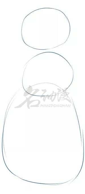 第一步:首先要画出猫大概的轮廓,确定好猫的形状大小,以及动作的动态。画出两个相同的圆表示猫的头部和胸部和一个有点不规则的大椭圆形表示猫的下体部分。在这一步所画的线条都要是使用力度非常轻的线条,可以用铅笔来刻画这一步。如图所示: