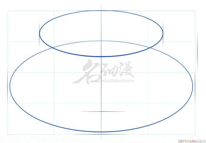 不管多复杂的造型设计,画画的第一步都是先起型,用简单的线条概括出粗略的造型,画杯子这种简单的道具也不会例外。我们先画出一大一小两个椭圆形,确定杯子的高度、大小以及杯托的大小。