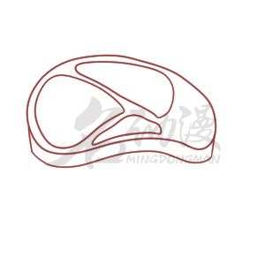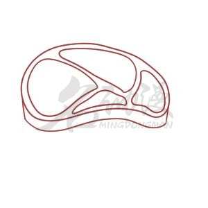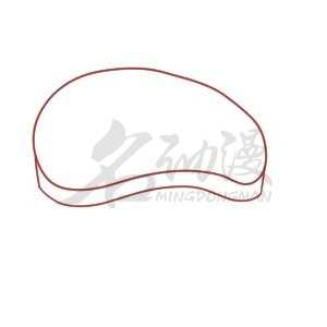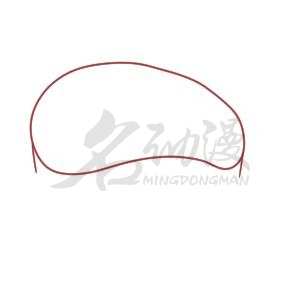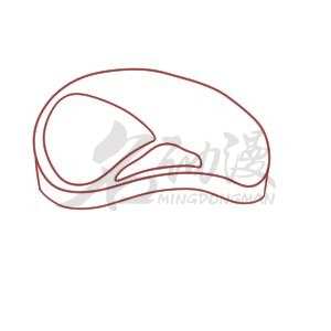 第一步:画出肉块的大致形状——一个椭圆形,这里有个画肉技巧,肉并不是坚硬的物体,所以线条要尽可能柔和些,椭圆形也要有所变化。另外,重点是将左侧画大一些,然后将右侧画小一些。