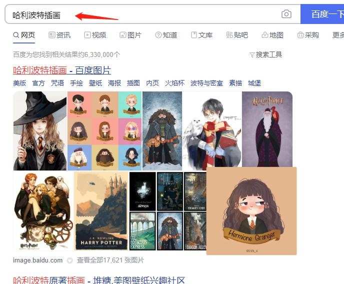 要想细节一点就缩小范围搜索,例如哈利波特的人物:哈利、赫敏等。