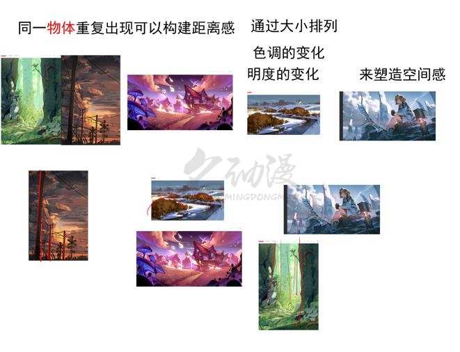 (1)同一个物体反复出现可以构成距离空间感。