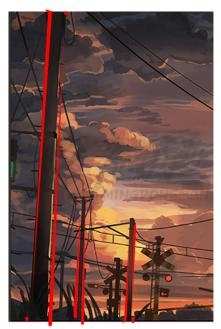 就例如图中多个电线杆的出现,使得越远的物体就越小,这样的手法可以表现距离感来塑造空间感的存在。