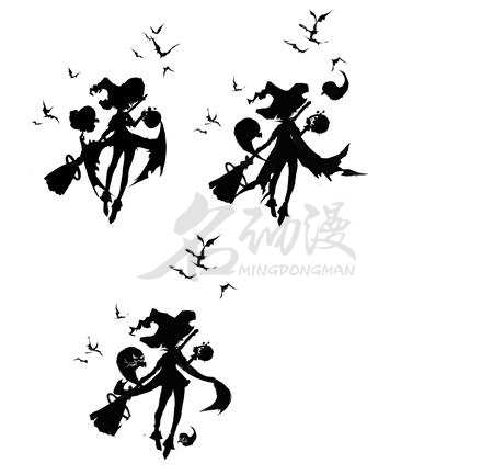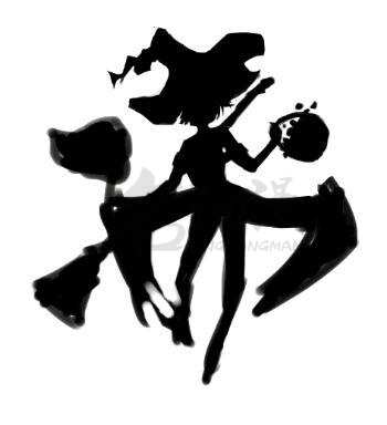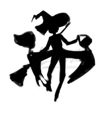 如下图所示:和上一期一样,仍旧是以女巫加万圣节为主题。从剪影里头不难看出角色的造型是个拿着扫帚的女巫,周围的剪影是蝙蝠、幽灵等凸显身份的怪物。这个图例充分说明了剪影画法是对角色的一种概括,也是画画前期必不可少的阶段。