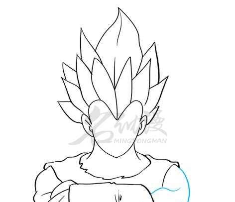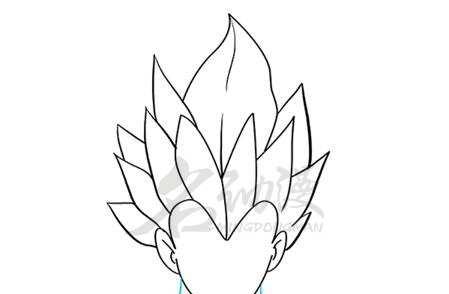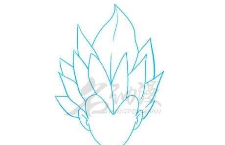 第一步:画出贝吉塔的头部。贝吉塔最明显的标志恐怕就是他那头金黄色像菠萝树叶一样的头发,按照这个思路我们将他的头发画出来,记住要有层次感,紧接着是脸型和耳朵。