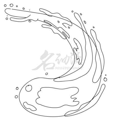 第三步:接着在水流内部添加上一些更小的形状,再根据水流内部的形状作为引导,添加更多弯曲形状。周围画一些小圆圈,以显示水从形状中溅出。如图所示: