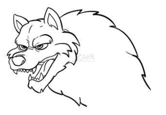 第三步:完成狼人的头部后,在头部绘制一些弯曲的锯齿状线条,以创建狼人毛茸茸的背部和胸部。如图所示: