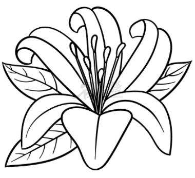 第五步:最后添加上百合花的细节,再在百合花的右侧再画一片叶子。如图所示: