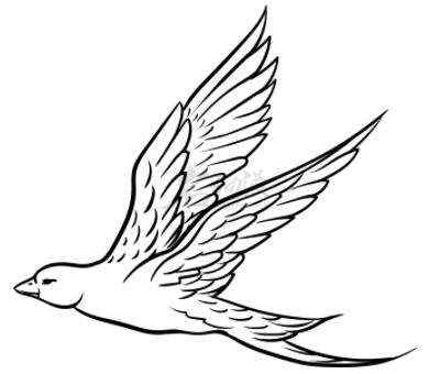 第二步:接着绘制鸟的翅膀飞行时的动态,要在翅膀上的一些线条和身体的一些线条。如图所示: