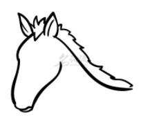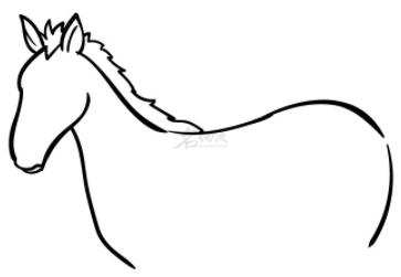 第一步:首先,使用曲线绘制马的头部侧面轮廓。再画两个小的三角形耳朵,然后在脖子后面画一条曲线。如图所示: