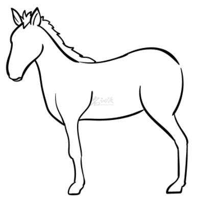 第三步:从马的下巴向下画一条略微弯曲的线,从鬃毛延伸并在后端弯曲以形成马背的曲线。再沿着马背向下绘制一条略微弯曲的线。如图所示: