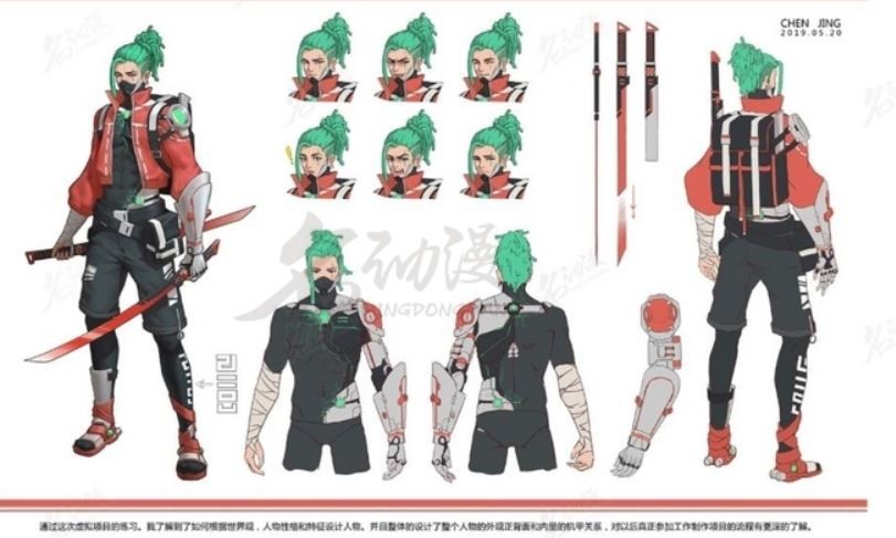 一般来说,在设计角色时最好把角色的正面、背面和侧面都需要画出来,这样能够仔细发现设计中的问题。如图学员的不管是正面,是背面,还是侧面,都衔接很好。