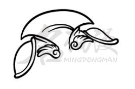 要点二:再在另一边的,绘制看起来左边小一点的龟壳。接着再绘制肩上装饰的扣环,这看起来很花哨,扣环内有一个小漩涡,然而外侧看起来像翅膀的曲线。如图所示: