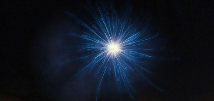 要点十四:在渐变设置里,将使用到3种颜色。从左侧颜色将作为初爆,其通常是红色或橙色的颜色。在到右侧的颜色将在设置暗蓝色,淡出爆炸的边缘。然后需要在中间多一种颜色。单击渐变栏正下方将允许设置新颜色。将其弹出到50%标记附近。对于这种颜色,选择使用更亮的蓝色。当然,这些颜色可以更改为自己想要的烟花颜色。如图所示: