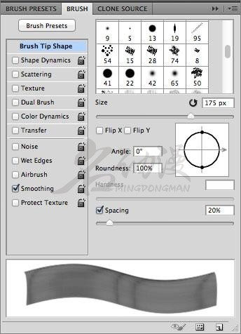 要点六: 选择设置好的笔刷,将大小设置为175px。将间距其设置为20%。如图所示:
