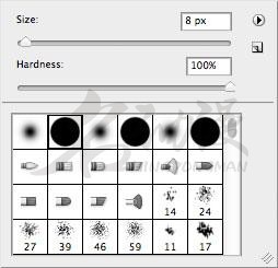 要点一:随意创建一个图层,使用画笔 工具并选择一个标准的硬笔刷,并将大小设置为8。稍后使用这个画笔。如图所示: