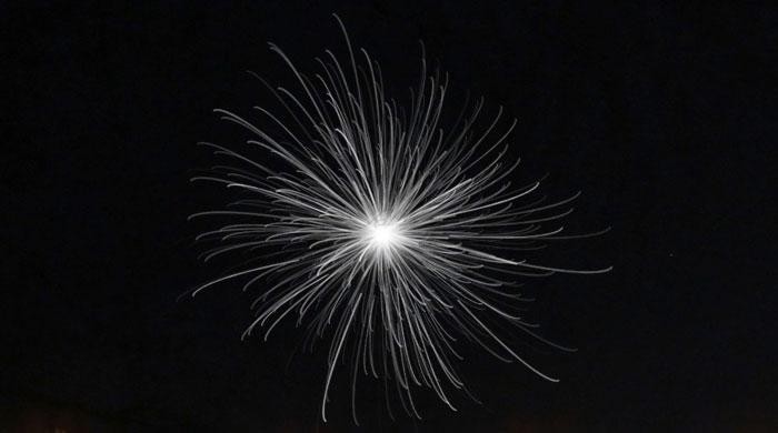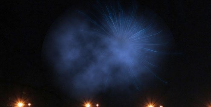 要点十七:对形状感到满意时,将此图层的混合 模式更改为屏幕,将不透明度降低到40% 左右,然后将图层拖到烟花图层后面。如图所示: