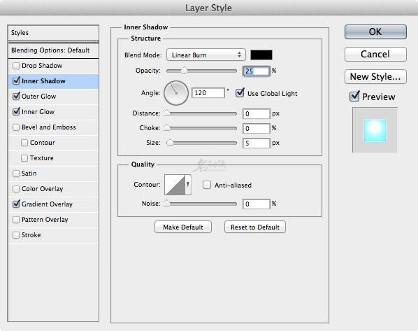 要点十五:接着勾选添加图层样式里的内发光、外发光,以及内 阴影。如图所示: